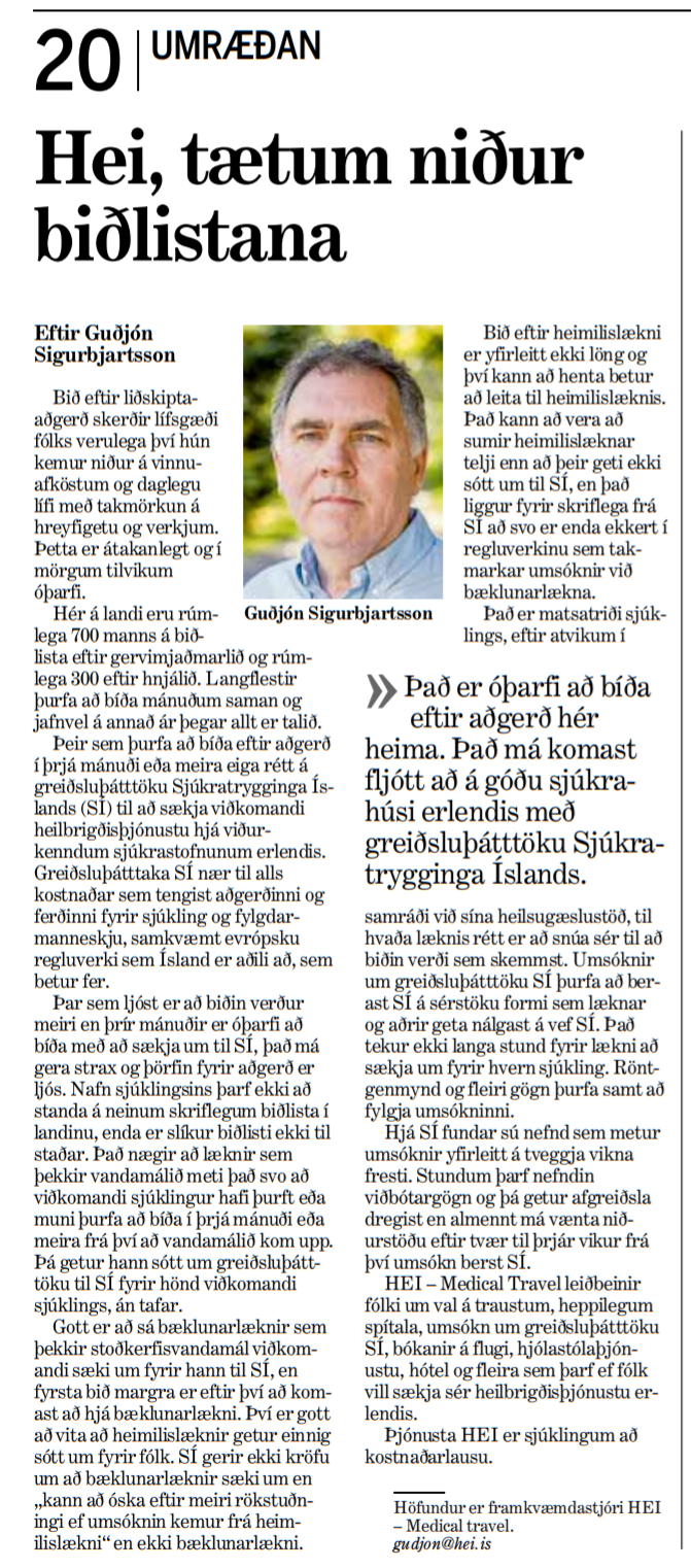 Hér á landi bíða rúmlega 700 manns eftir gervi mjaðmalið og rúmlega 300 eftir hnjálið. Langflestir þurfa að bíða mánuðum saman og jafnvel á annað ár. Þetta þarf ekki að vera svona.