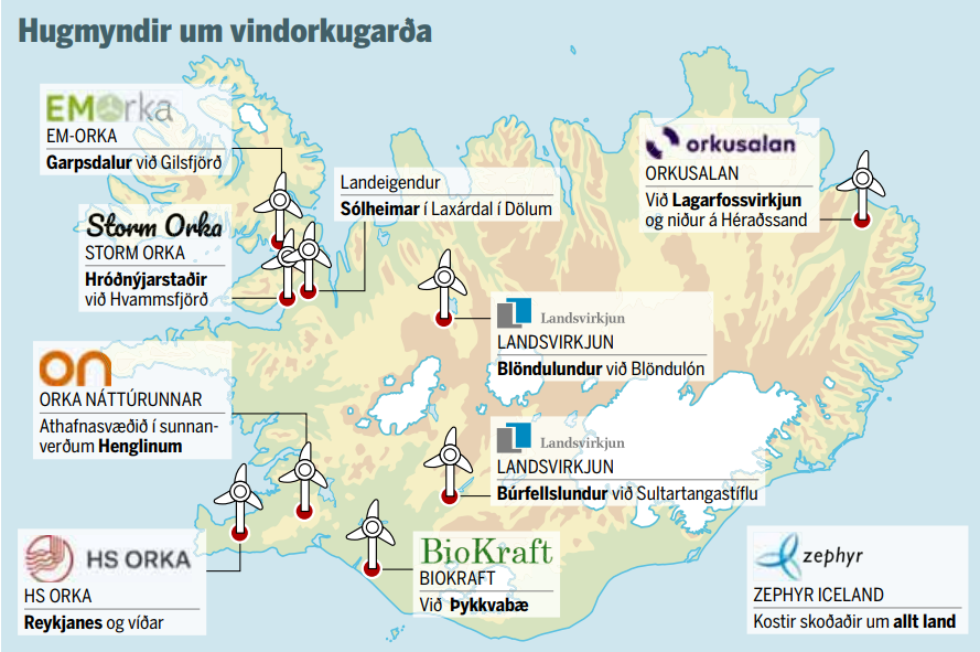 Þegar er kominn fram áhugi á að framleiða hér um 1000 MW af rafmagni með vindorku og ljóst að áhuginn mun bara vaxa. Útlit er fyrir að auðveldlega verði hægt að fullnægja fyrirsjáanlegri innlendri eftirspurn eftir raforku til langrar framtíðar og auk þess ætti að verða nóg eftir til útflutnings um sæstrengi ef til kemur.